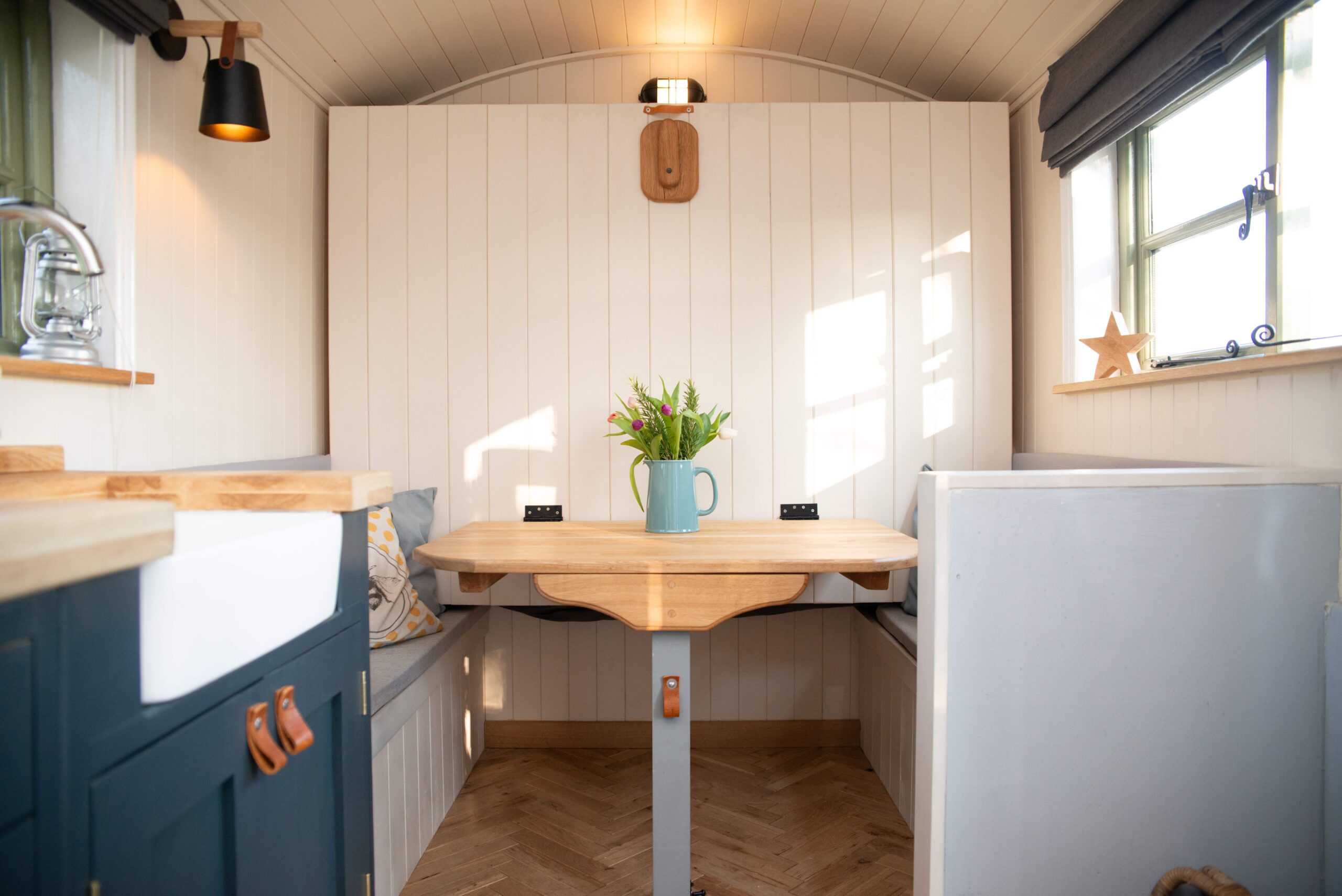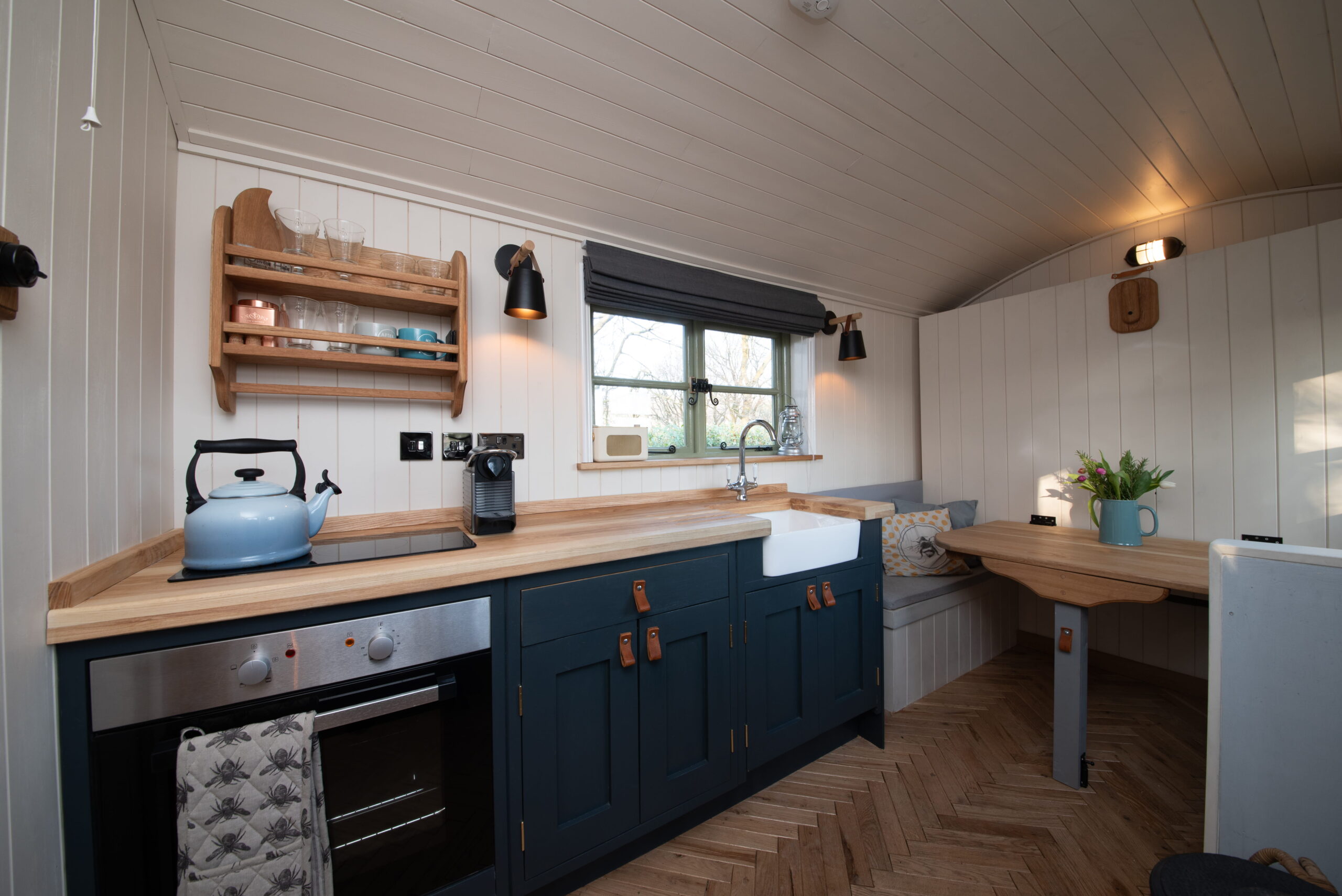 With just one shepherd’s hut, the site feels truly secluded and accessible only from a small path off of a quiet lane. Inside, there is a fully equipped kitchen with a fridge, oven and an electric hob. There is also a kettle and a coffee machine for your morning brew!